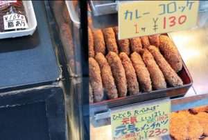 Menchikatsu is the shop’s most famous meal: a deep-fried cake, furnished with ground meat, crab-cream or vegetables.